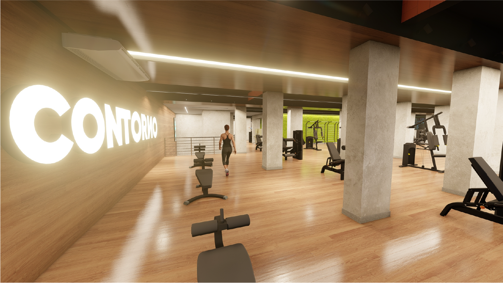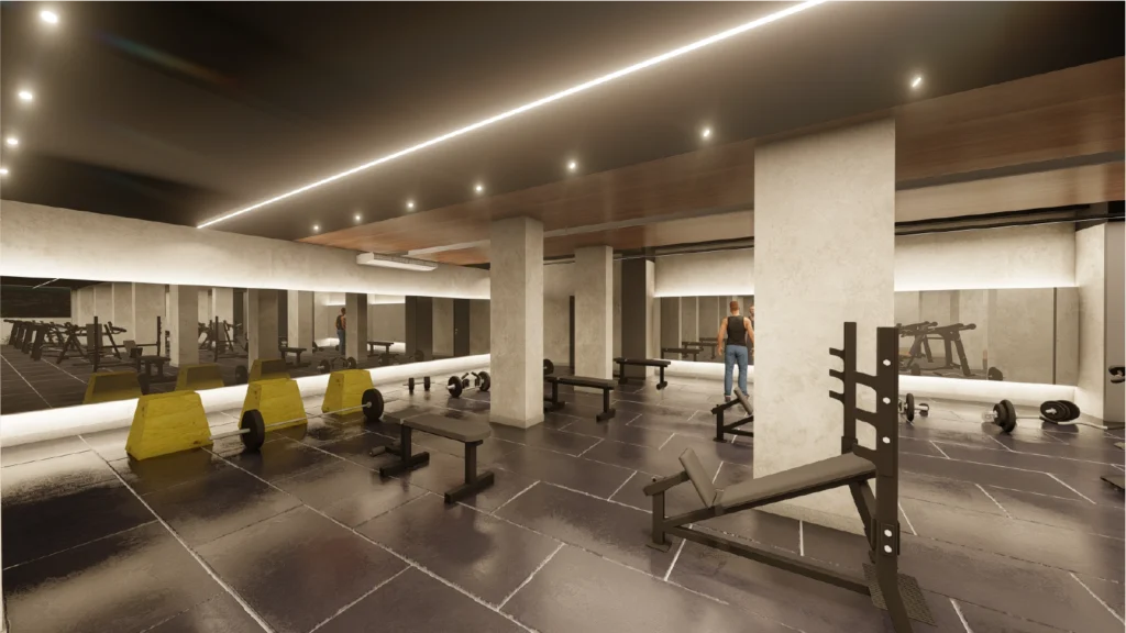 • Área de musculação completa, com equipamentos modernos e ergonômicos.