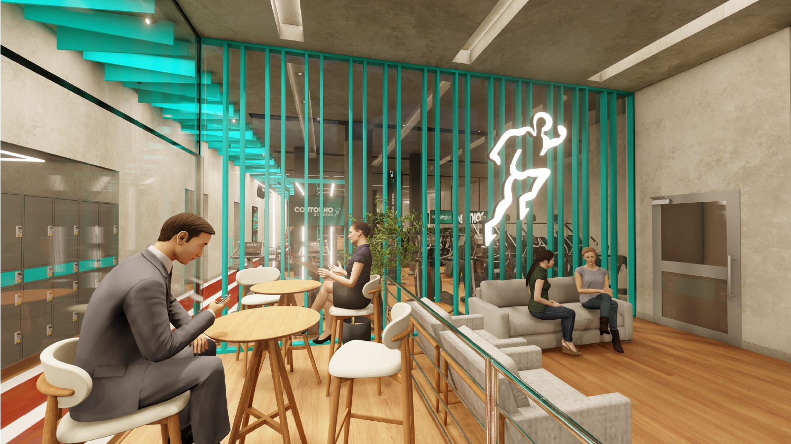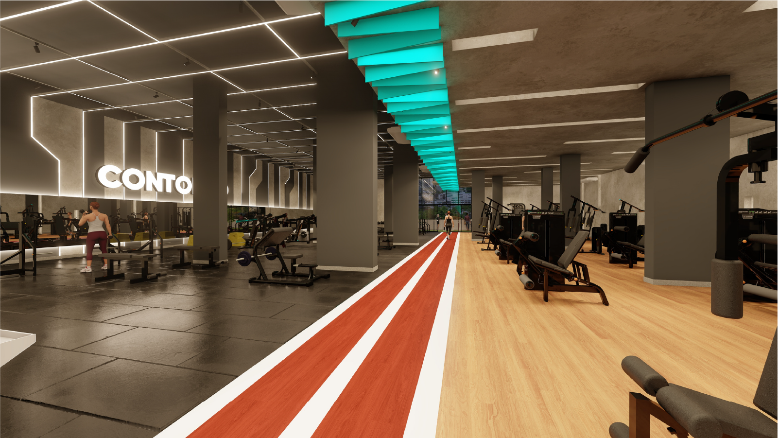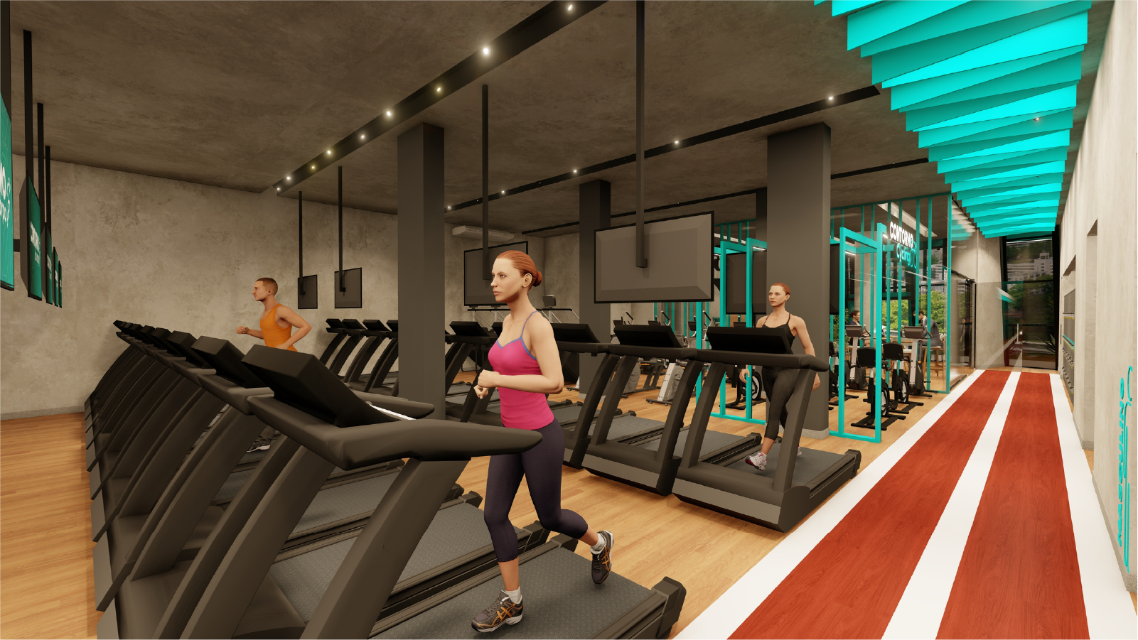 • Área de cardio moderna, com esteiras de alta tecnologia, conectividade e experiência imersiva.